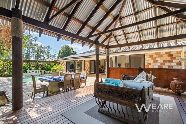Outside, discover an Asian-inspired paradise with a Balinese hut overlooking a paved patio and resort-style pool—your private piece of Bali, available year-round. The lush, established garden, complete with diverse fruit trees, a chicken coop, and a dam, spans across a generous acre. All this serenity, located conveniently close to schools, shops, and major roads, awaits you. Welcome home.