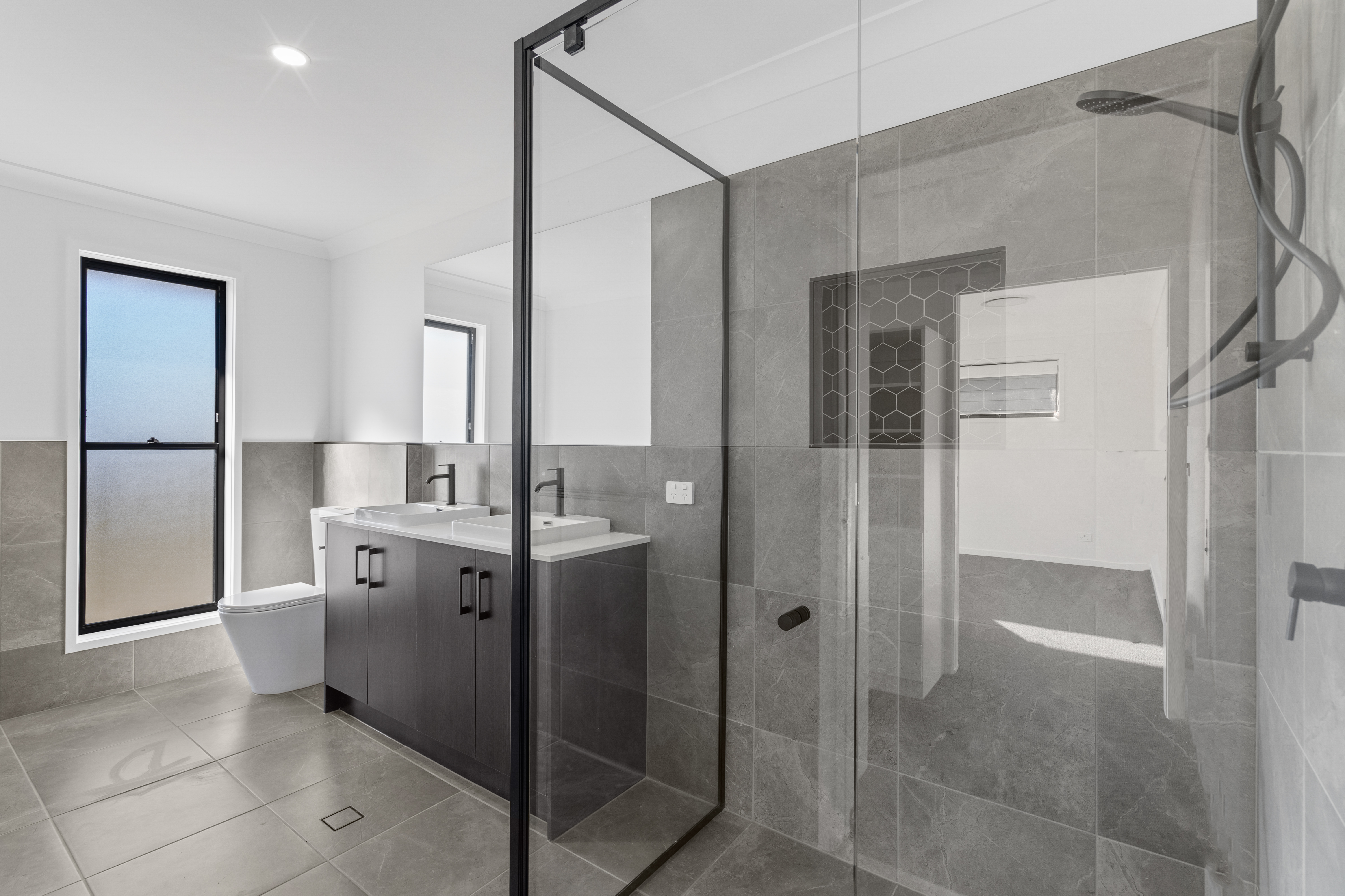 • All plans are customisable to your personalised outcome. • Colour consultation with an Interior Designer. • 2590mm Ceilings throughout. • Tiling to main floor areas, Porch & Alfresco (Balcony where applicable). • Carpet to all bedrooms, Robes, Media Rooms & Lounges where applicable. • 1200mm high tiling throughout bathroom & ensuite, shower tiling to 2100mm. • Robes include Bank of 4 draws with single shelf & hanging rail. • 20mm Stone benchtops to kitchen, laundry, and vanities. • 900mm Fisher & Paykel appliance package including dishwasher. • Choice of black or chrome tapware from builders’ standard range. • Exposed aggregate driveway, clothesline & letterbox. • Split system Ac to Master bed and main living area.