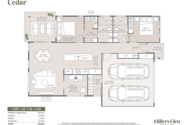 This two bedroom, two bath + study home with a two car garage is a spacious, light-filled, low-maintenance modern home design that features;