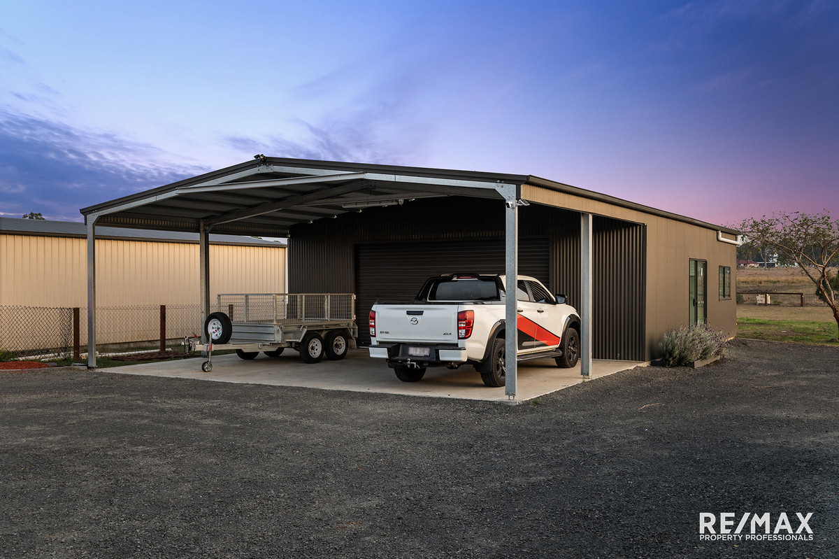 Electric gated entry, leads you to the large shed (double front and back entry), neatly placed to the side of the property for extra vehicle accommodation, trailer, boat or campervan.