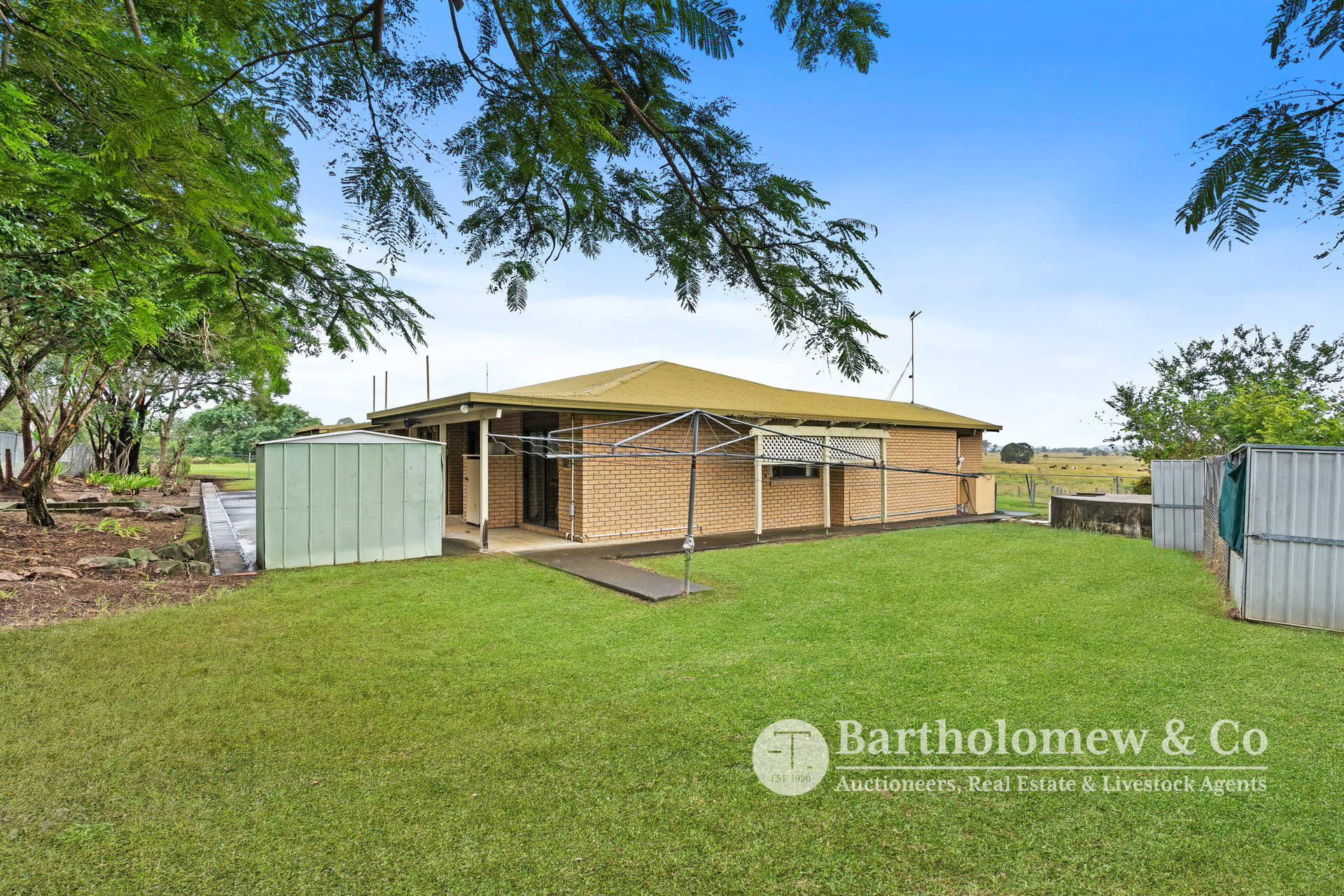 built in BBQ. - Formal lounge & dining. - Large rumpus with built in bar. - Master bedroom with ensuite and walk in robe. - Undercover parking for 2 vehicles. - Fully fenced with dog proof fencing on house yard. - Old dairy building / currently used as storage. - Small stockyards. - 235m* road frontage to Mt Lindesay Highway. - Picturesque views to the border ranges.
