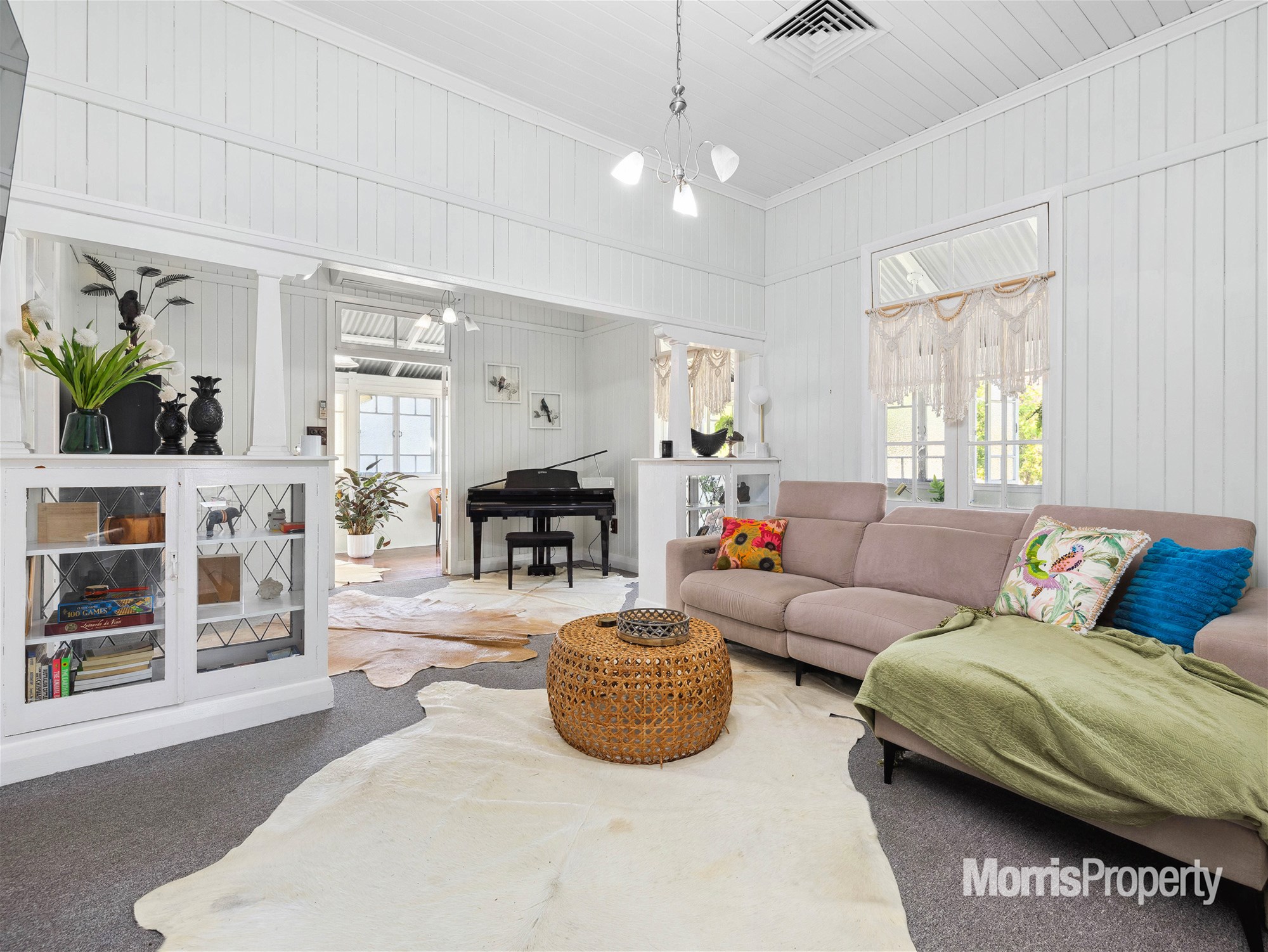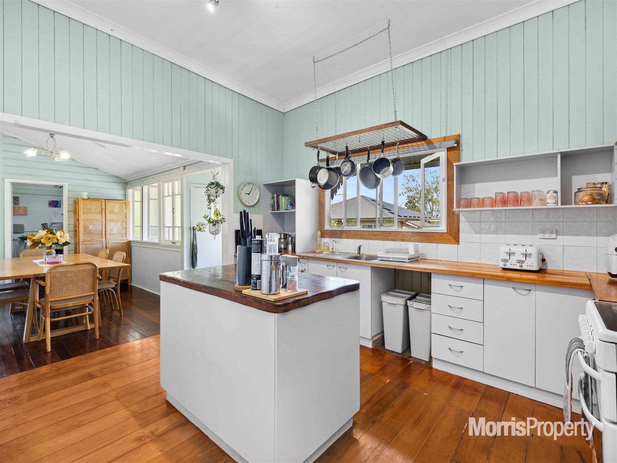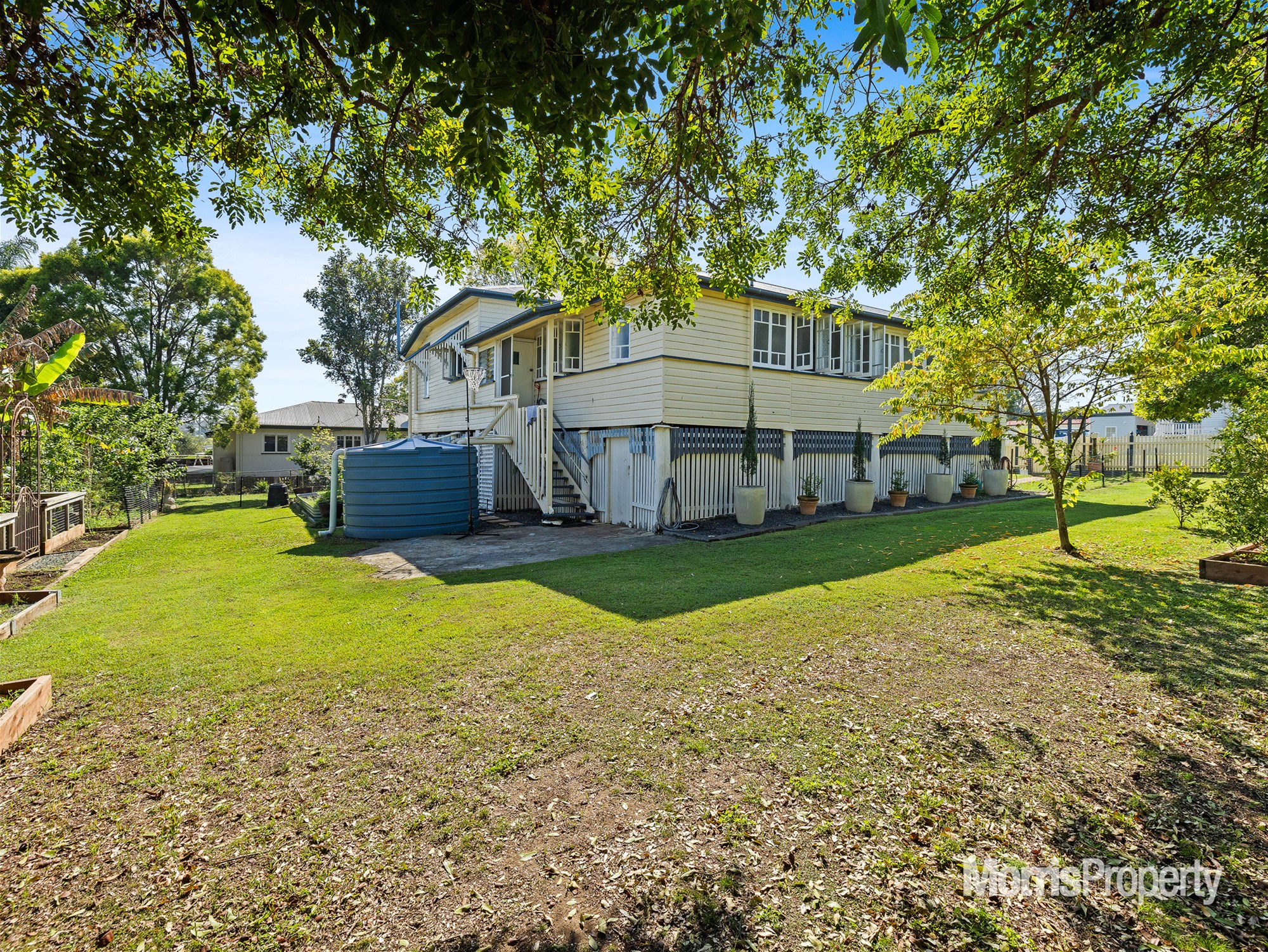 It doesn't get much better than this! This charming highset Queenslander family home sits on a generous 1,295 sqm corner block, offering two street frontages. The residence includes three spacious bedrooms, each with wardrobes, plus a study. The interior features beautiful hardwood timber floors, high ceilings, and classic tongue and groove walls. The country-style kitchen is a great space, with ample storage and timber bench tops. The home offers multiple living spaces, including a formal dining room, a large lounge, and an enclosed sunroom with a built-in kitchenette.