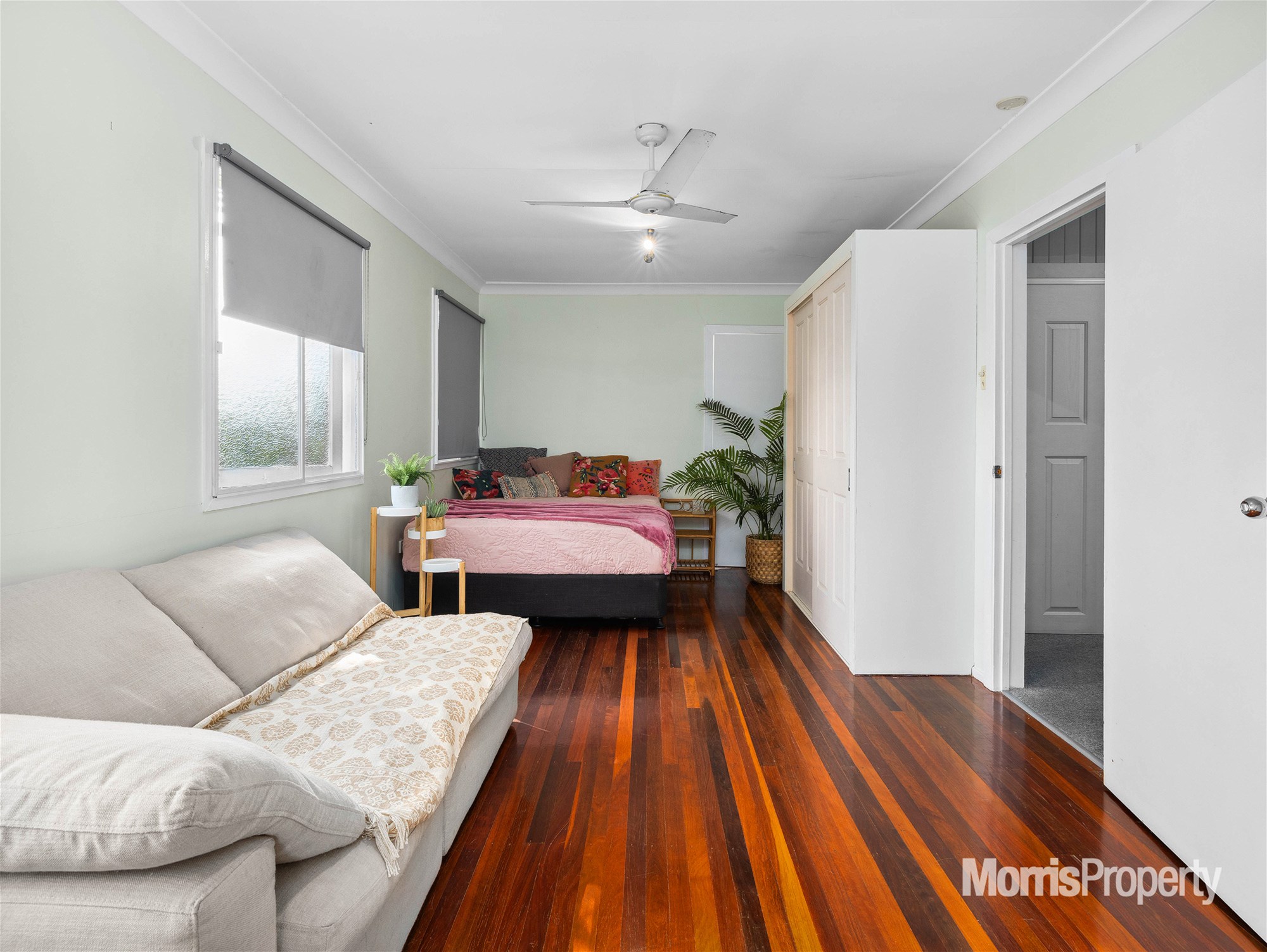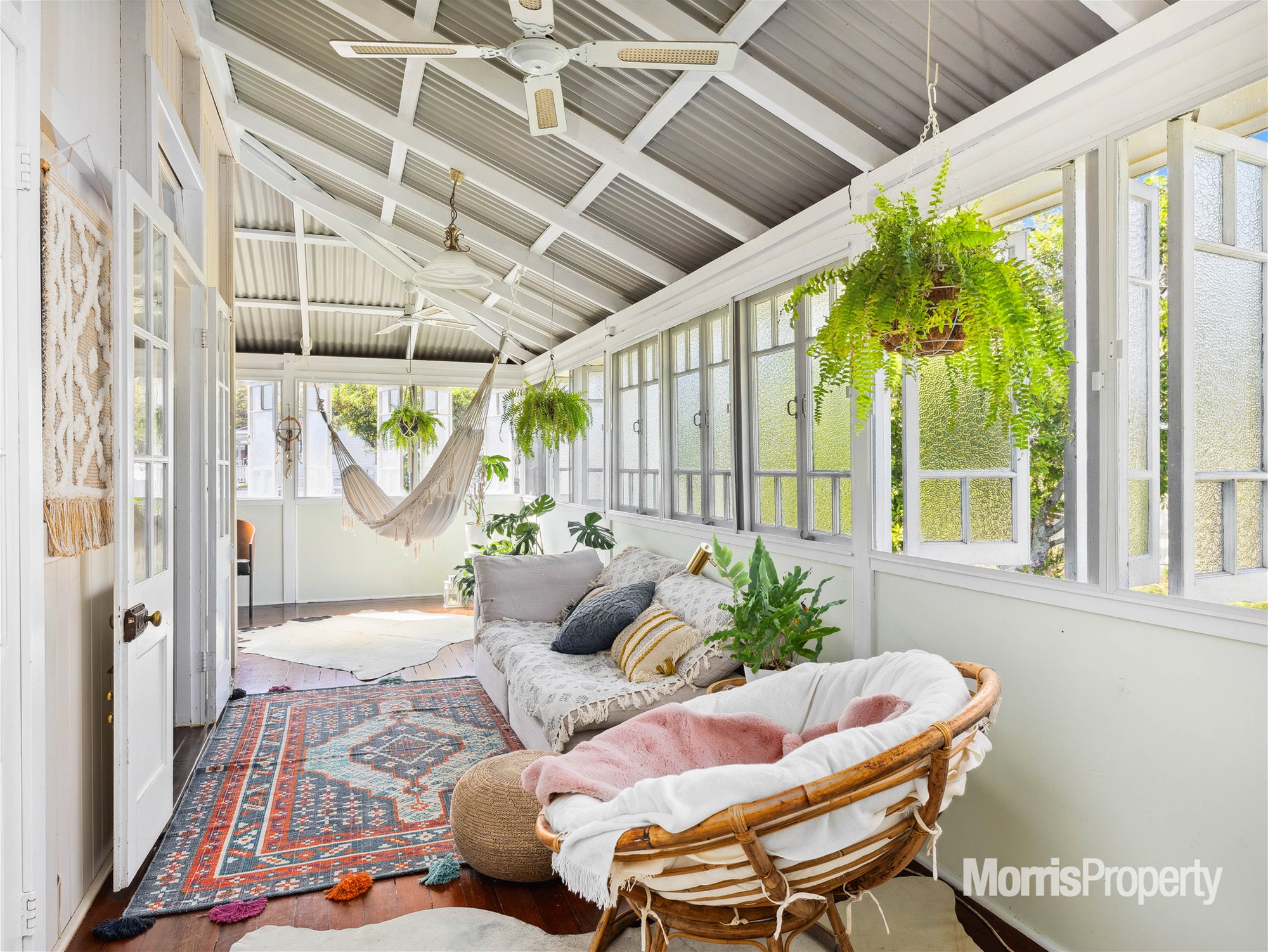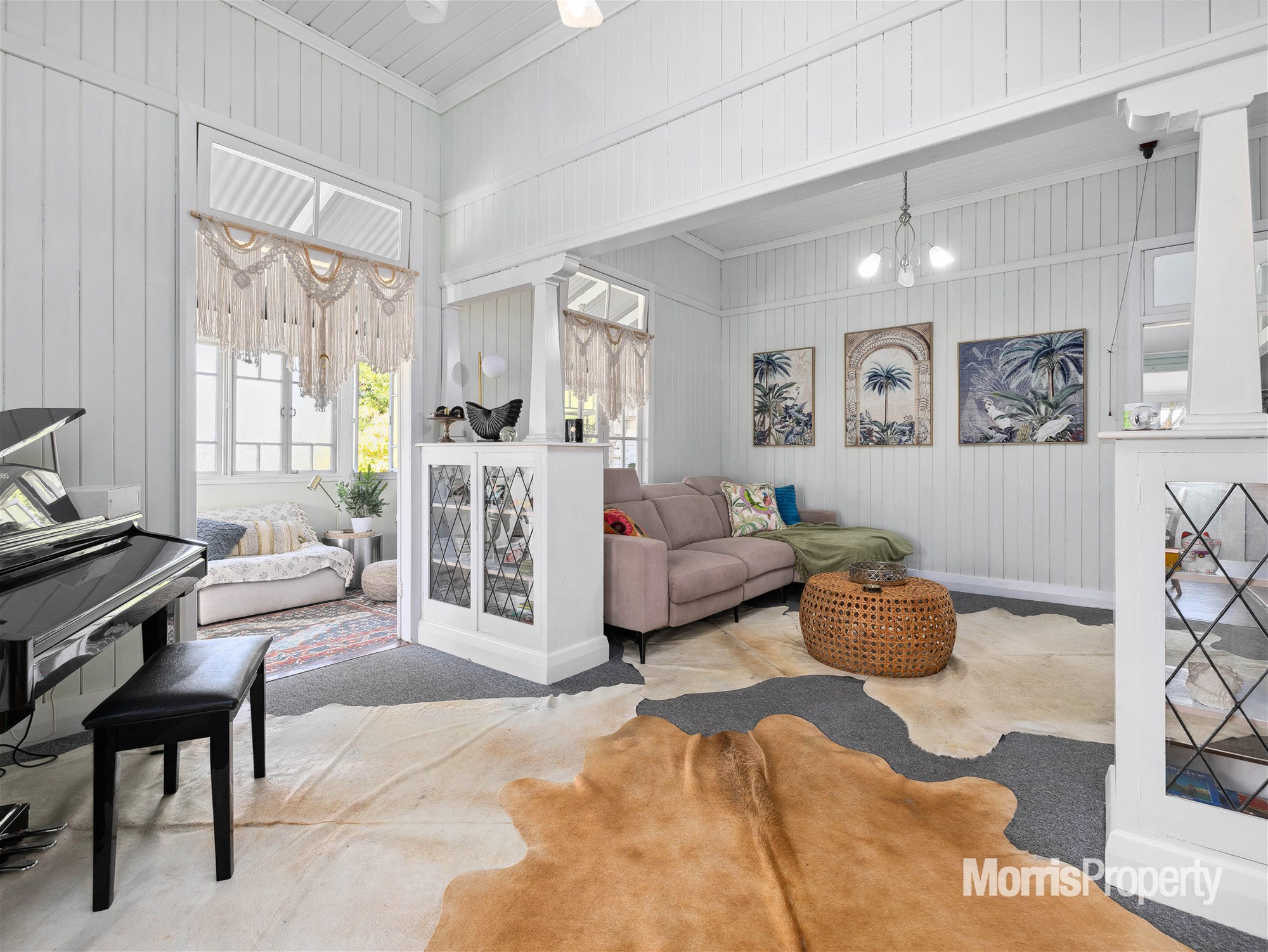 It doesn't get much better than this! This charming highset Queenslander family home sits on a generous 1,295 sqm corner block, offering two street frontages. The residence includes three spacious bedrooms, each with wardrobes, plus a study. The interior features beautiful hardwood timber floors, high ceilings, and classic tongue and groove walls. The country-style kitchen is a great space, with ample storage and timber bench tops. The home offers multiple living spaces, including a formal dining room, a large lounge, and an enclosed sunroom with a built-in kitchenette.