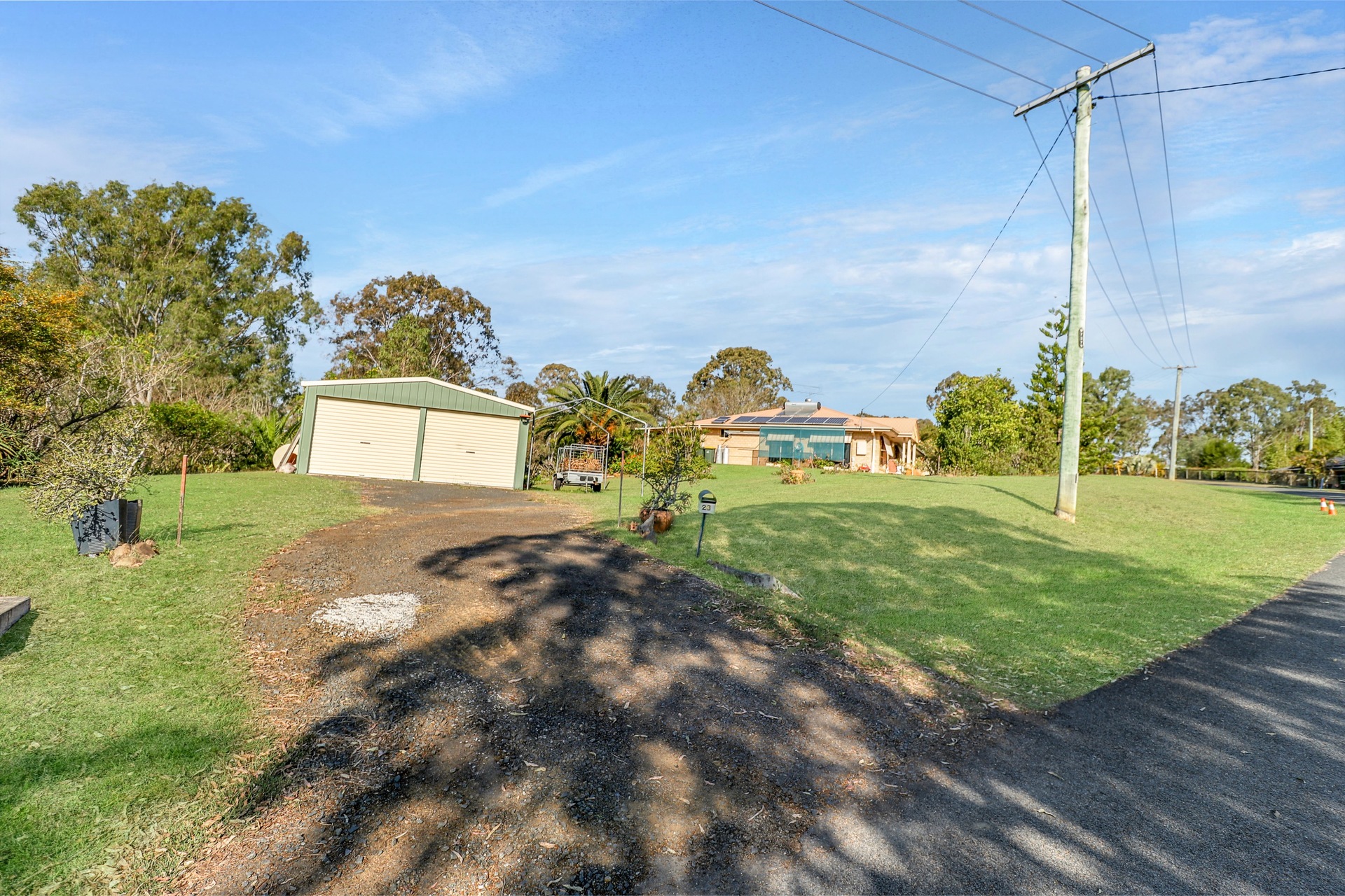 Kitchen has a 900 wide stainless gas stove, dishwasher and pantry Bathroom has shower & bath tub Double bay lock up colour bond shed Covered and fenced rear entertainment area Security screens and doors Garden shed Solar Power Caravan parking Full pressure town water Landscaped gardens