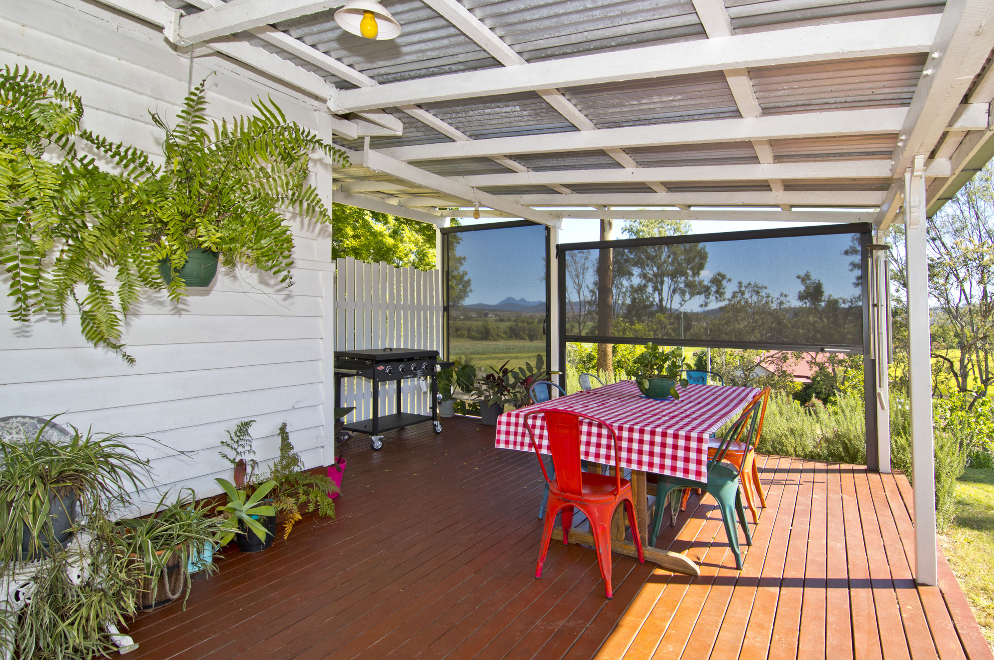 The cottage sits proudly on the 2,235m2 block with an elevated position to capture extensive views of the beautiful surrounds which can be enjoyed from the covered entertainment area. This delightful spot has been fitted with weather blinds for added comfort and is a great spot for a BBQ or early morning cup of coffee!