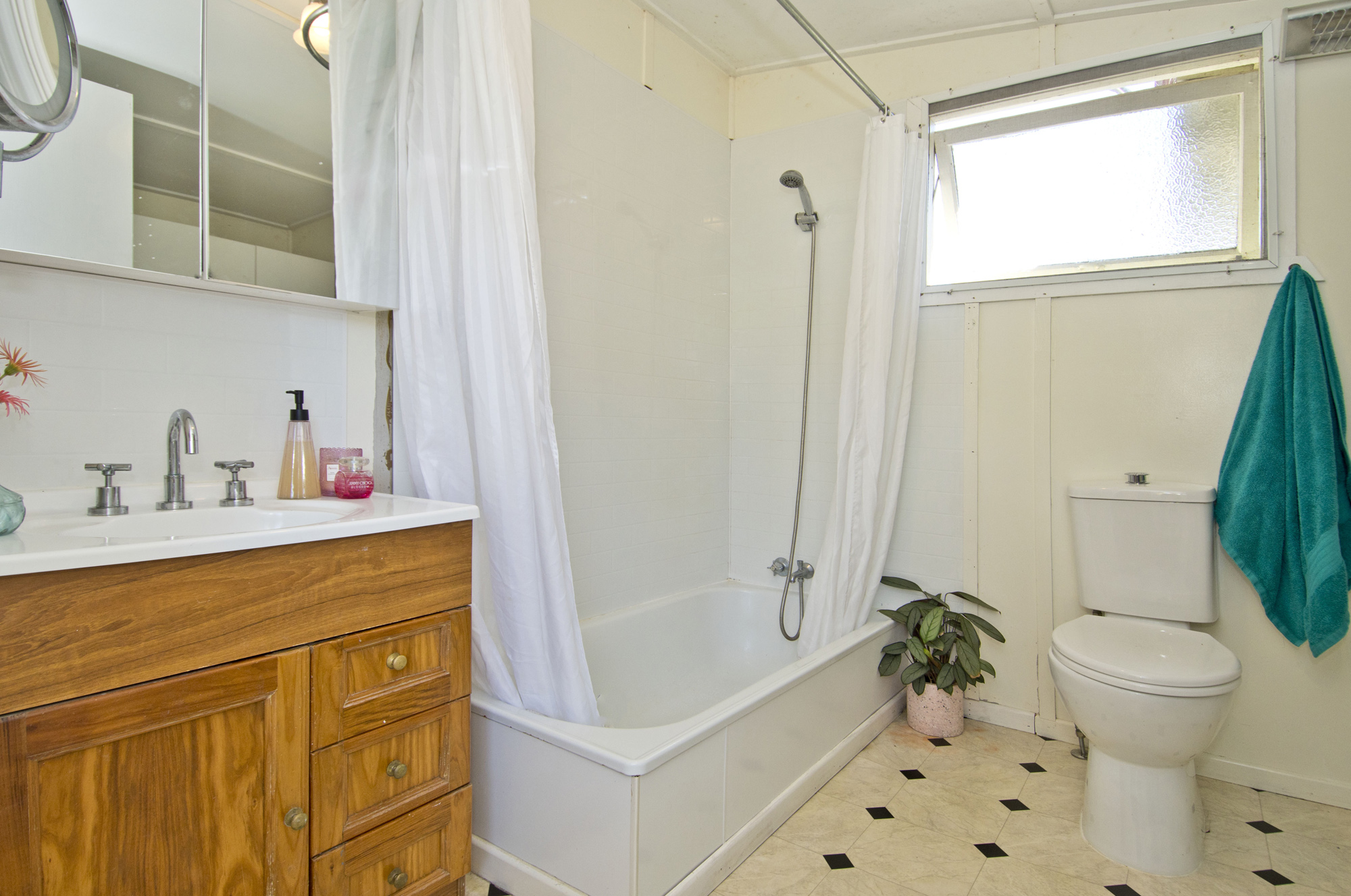 The bathroom is equipped with a shower and bathtub and is also the laundry so it's a good size room.