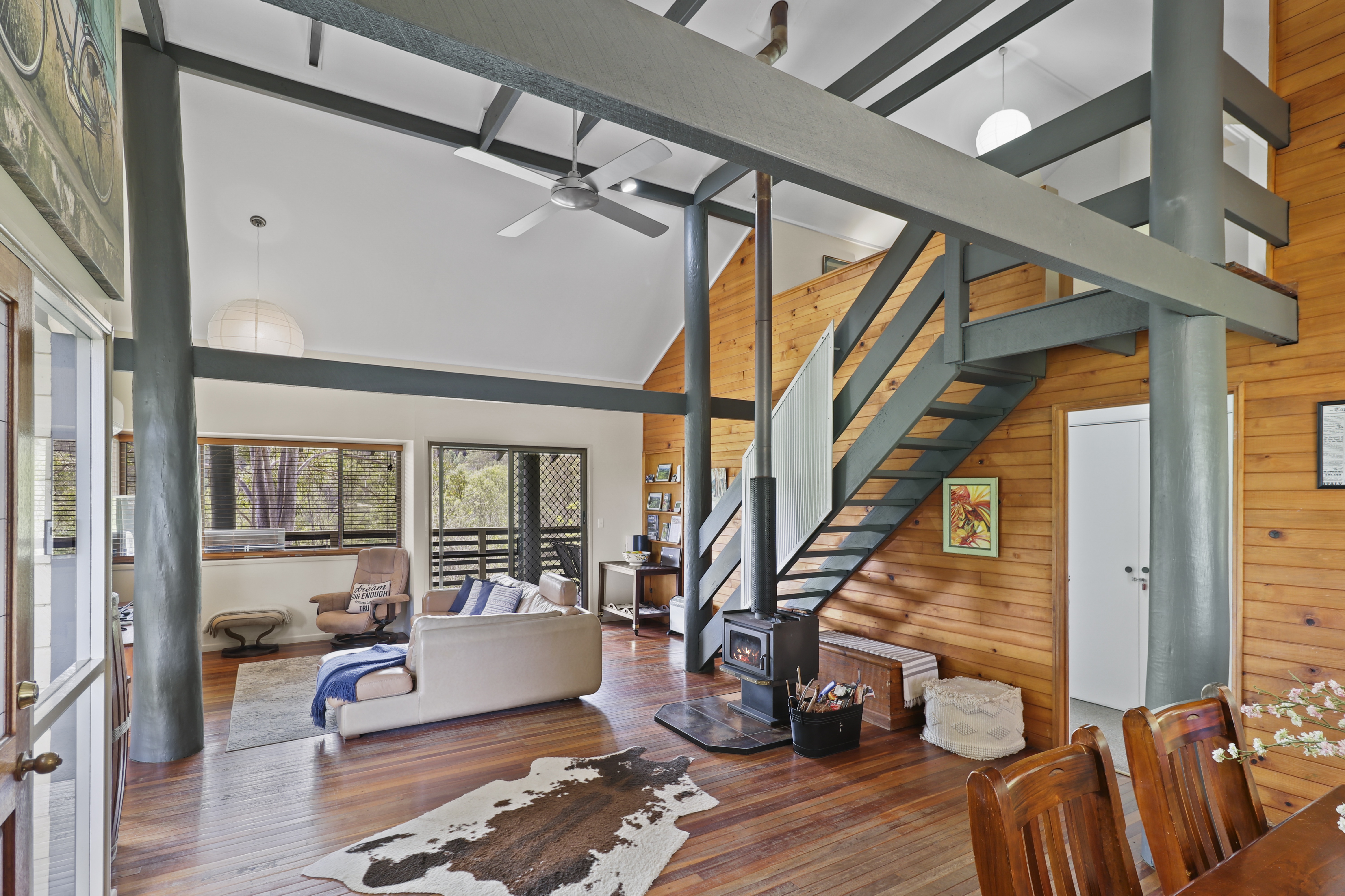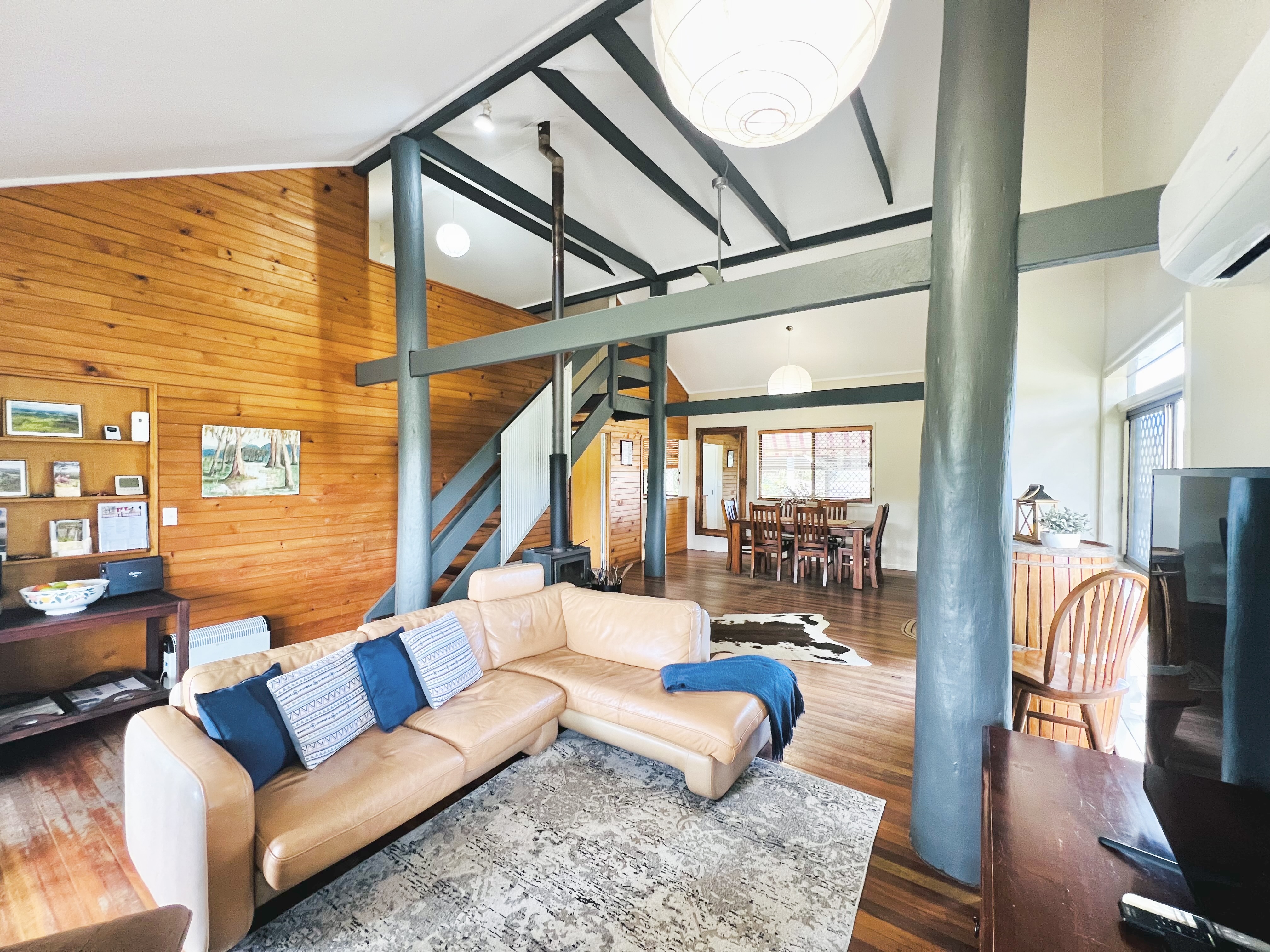 Perched beautifully on 1.1 acres of fully fenced land, this country cottage truly is a sanctuary of warmth and space! As you step inside, the cathedral ceilings with exposed timber beams draw your gaze upward, creating an airy, light-filled atmosphere that’s perfectly balanced by the rich timber flooring.